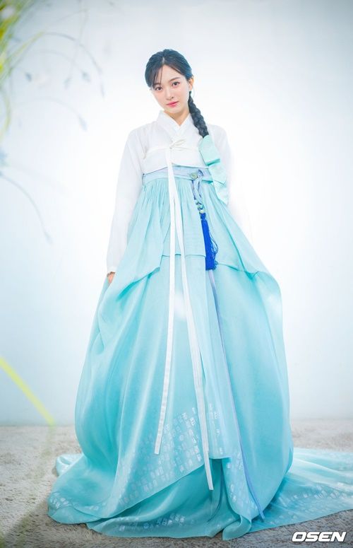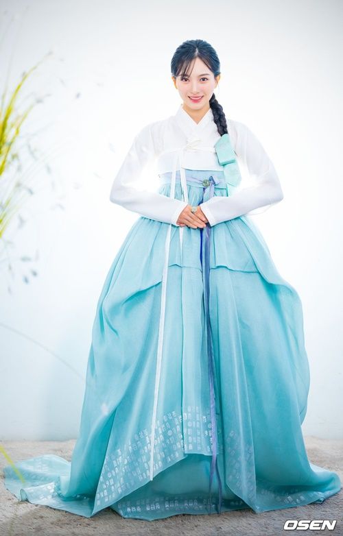 今回の韓服インタビューも、大きな関心を集めた。彼女が身に纏ったのは、純白のチョゴリと淡い空色のチマ。その姿は清らかでありながらも優雅さを醸し出していた。きちんと編み込まれたヘアスタイルが、さらにその魅力を引き立てる。透明感あふれる、清潔で爽やかな雰囲気が完成されていた。