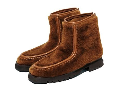 ブラウンファーブーツ(3.5)/HEREU(ショールーム セッション) 「色は使いやすくもボリュームのあるシルエットで存在感があり、展示会で好評でした。1枚の革から仕上げる伝統的な手法を用い、スペインの卓越した職人によって手縫いで作られた特別感のある1足です」(showroom SESSION PR・鈴木朋子さん)