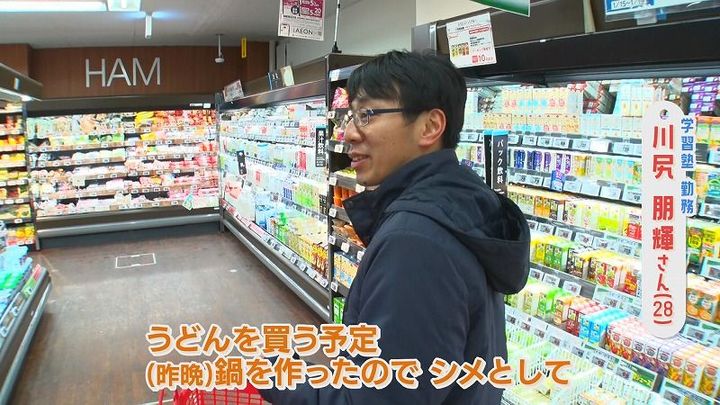 川尻さん:「うどんを買う予定。(昨晩)鍋を作ったので、シメとして。明日も受験生の応援で朝が早いので」
