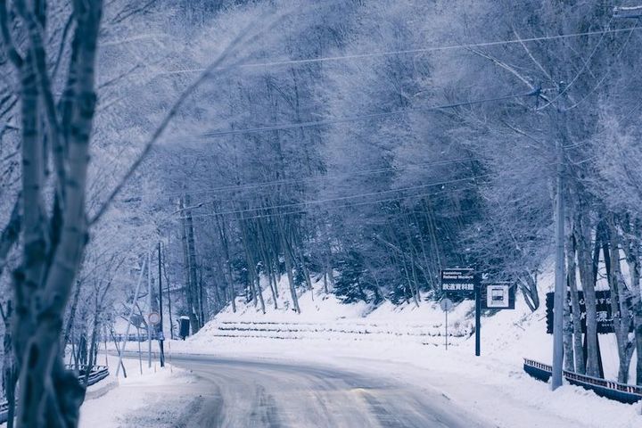 こうなると周りの景色もすごくきれいです。温泉街の木々たちは、真っ白な樹氷となっていました。