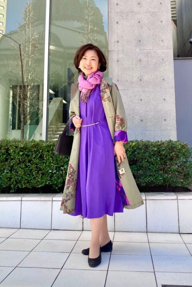 【60代お手本スナップ】「セタイチロウ」のきれい色ワンピースで、ひと足先に春気分を満喫!