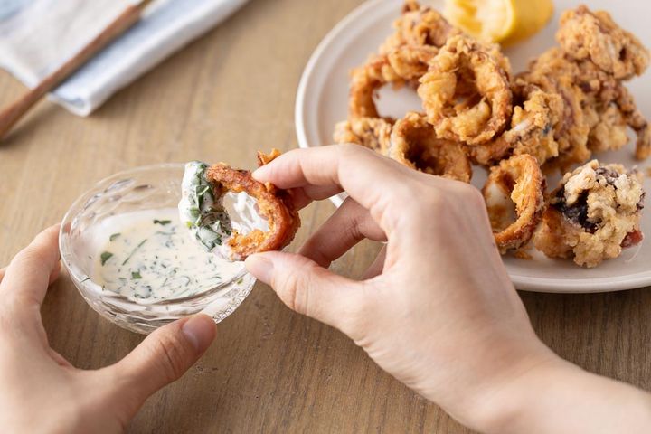 カリカリの衣をまとったイカフライに甘酸っぱい秘伝のソースをつけて食べれば、一度食べ出すと手が止まらない危険なレシピが完成しちゃいます!