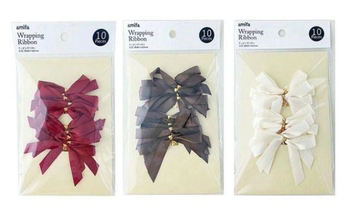 ラッピングのアクセントになる、タイで留めるだけのリボン。10個入りとたくさん入っているので、バラマキの小分けラッピングにもおすすめです。「ラッピングのタイをこれに変えるだけでおしゃれ度増した」との口コミもあり、リボンを結ばなくてもアクセントを加えられる手軽さが受けているようですね。