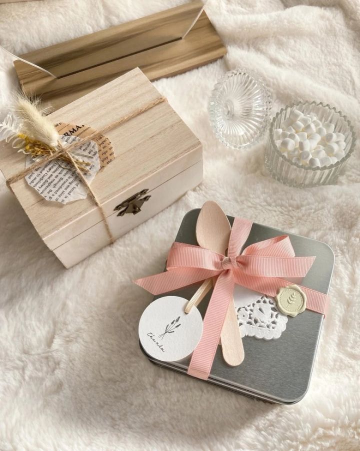 ギフトボックスを開ける瞬間はワクワクするもの♪いくつか詰め合わせられて便利なのはもちろん、緩衝材を敷けば大切なギフトが傷つかないように梱包もできます。