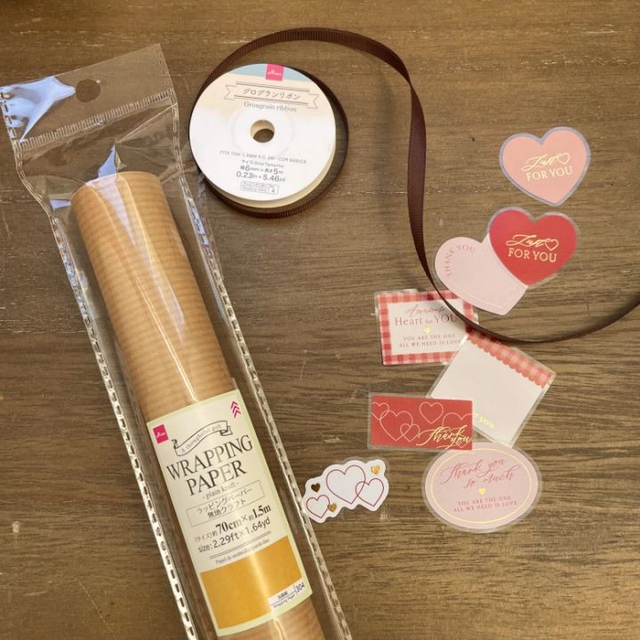 こちらのラッピングは、すべてダイソー商品を使用したそう。包装紙やリボンの色を変えると、雰囲気が大きく異なるラッピングに仕上がりそうですね。