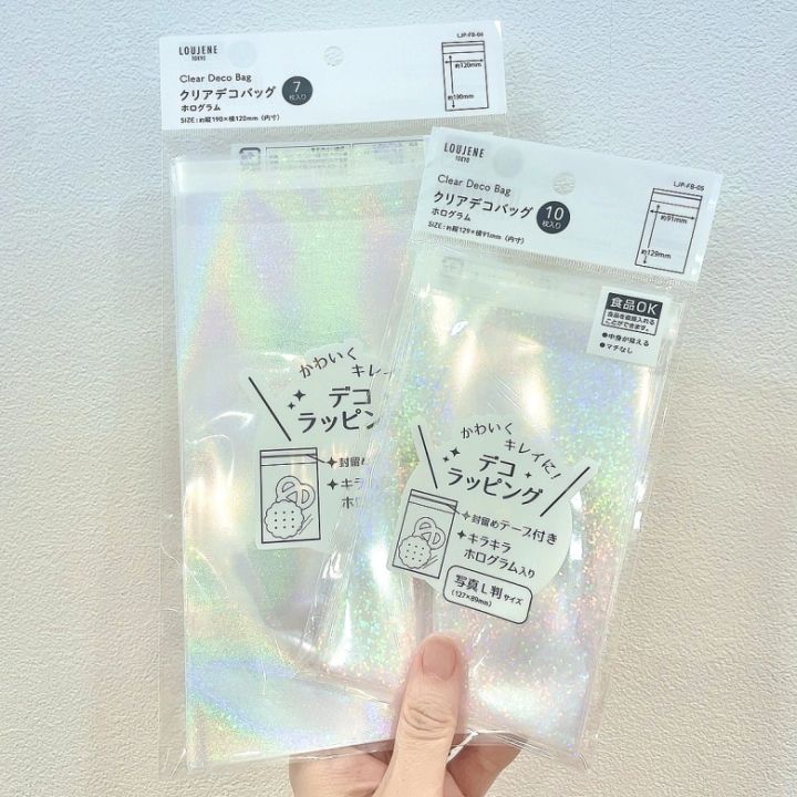 セリアにもたくさんの透明バッグがそろっていますが、中でもおすすめは、キラキラとしたホログラムがかわいい「クリアデコバッグ」。開け口には封をするテープもついているので、誰でも簡単におしゃれなショップのようなラッピングが完成します。