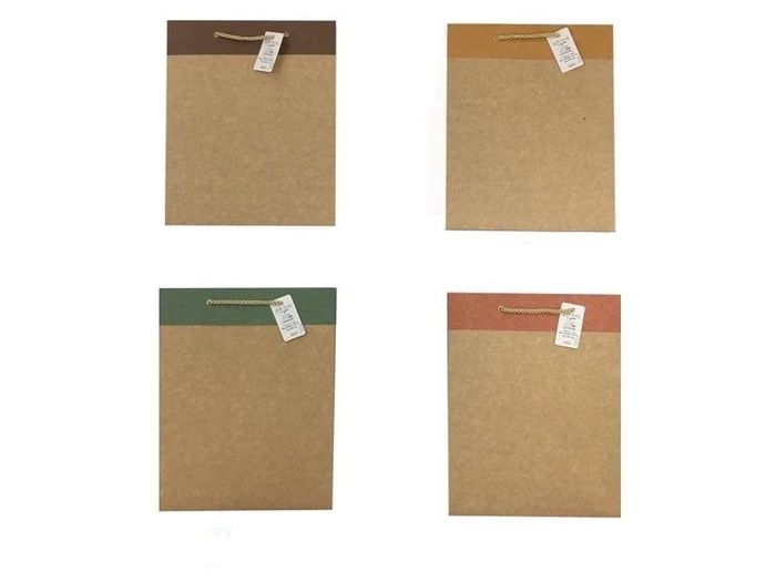 ダイソーには、柄入りだけでなく無地の紙袋も豊富にそろっています。中でも、シンプルなクラフト紙袋にアクセントカラーが入ったこちらの紙袋がおすすめ。「派手すぎず、落ち着いたカラーが素敵」「男性にも渡しやすいデザイン」との口コミも見られる、男女問わずカバンのように持ち歩けるおしゃれなペーパーバッグです。
