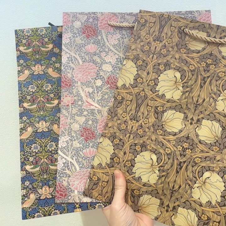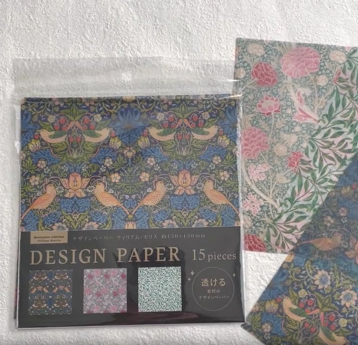 ウィリアム・モリスデザインのデザインペーパーも展開されています。折り紙サイズですが、その存在感は抜群。「ラッピングのアクセントとして使える」との口コミもあるように、小ぶりなもの全体の包装だけでなく一部に使用してもおしゃれですね。