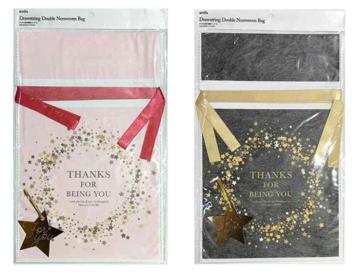 キラキラと散りばめられた星のデザインが素敵なこちらの巾着は、やわらかい不織布が二重になっているのでとても丈夫。Thanks for being you(あなたでいてくれてありがとう)と、どんなシーンでも使いやすいメッセージも魅力です。