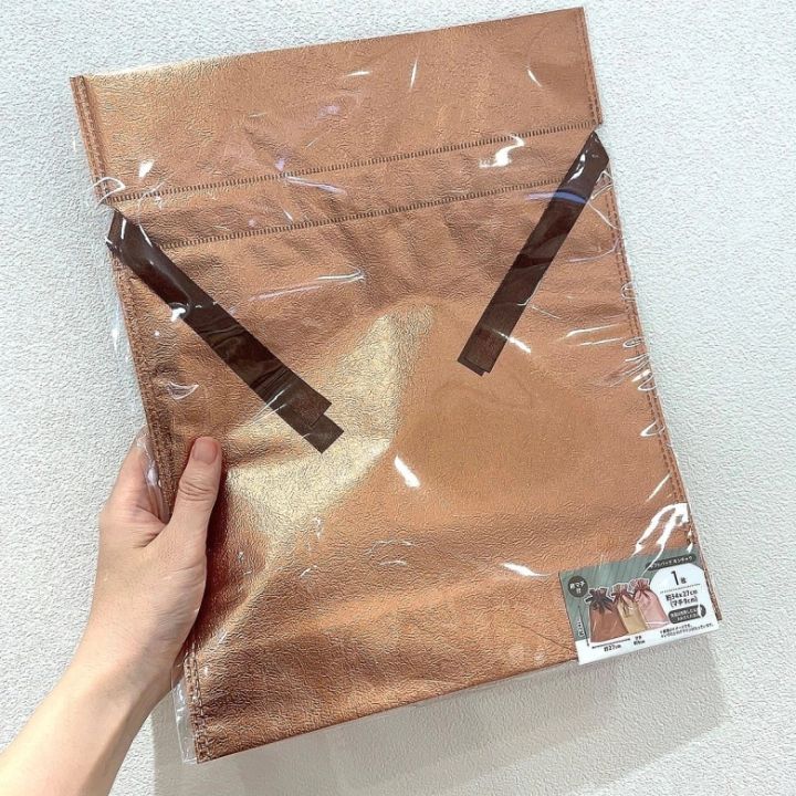 こちらはちょっぴりめずらしいメタリックな巾着。ブロンズのようなカラーと高級感のある質感は、大人の方へのギフト用にぴったりです。マチもあるので、しっかり中身も入れられます。