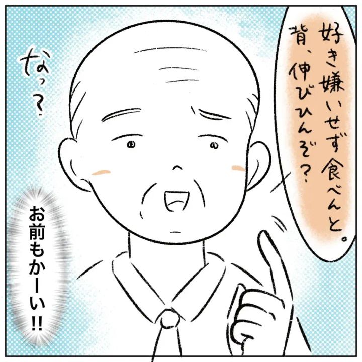 さらに校長先生は「好き嫌いせず食べんと。背、伸びひんぞ?」と性根先生と同じようなことを言います。