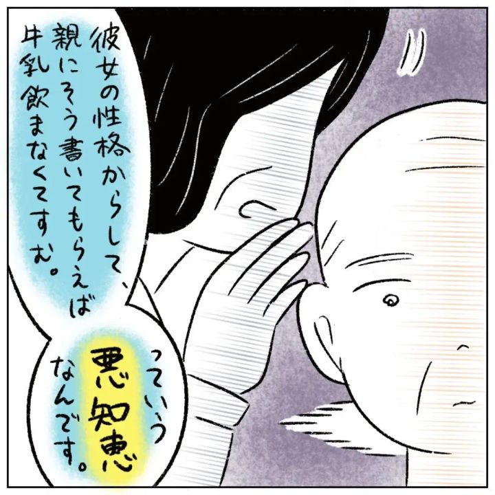 そして、「彼女の性格からして、親にそう書いてもらえば牛乳飲まなくてすむ。っていう『悪知恵』なんです」と校長先生に耳打ちしました。