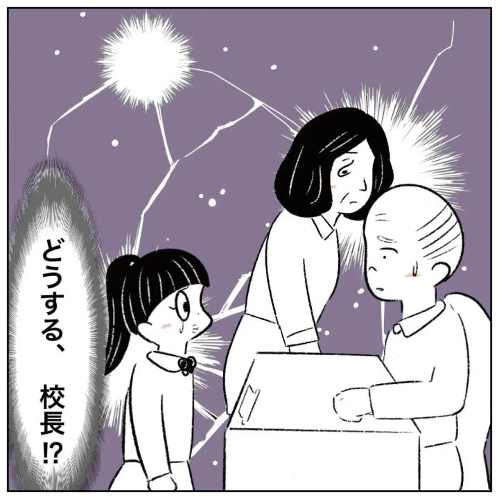 まるさんの言葉と涙を見て校長先生の顔色が変わりました。それを見た性根先生は焦ります。