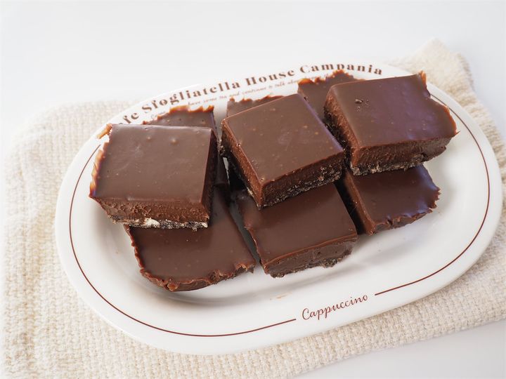 市販のというより洋菓子店やチョコレート専門店の味。形さえ整えれば、味、見た目共に高級感を感じるスイーツです。こんな簡単に出来てこのクオリティのギャップがすごい。今回は、容量約800mlの容器を使い9個に切りました。かなり濃厚なチョコレートなので1つがもう少し小さくてもいいかも。1、2人で食べるなら半量で作っても充分かもしれません。ナッツやフリーズドライのイチゴをトッピングしてアレンジしても楽しそうです。