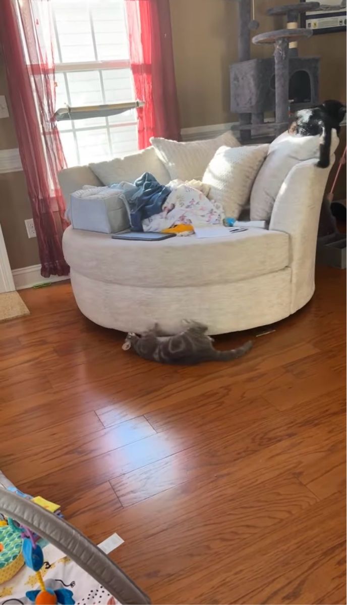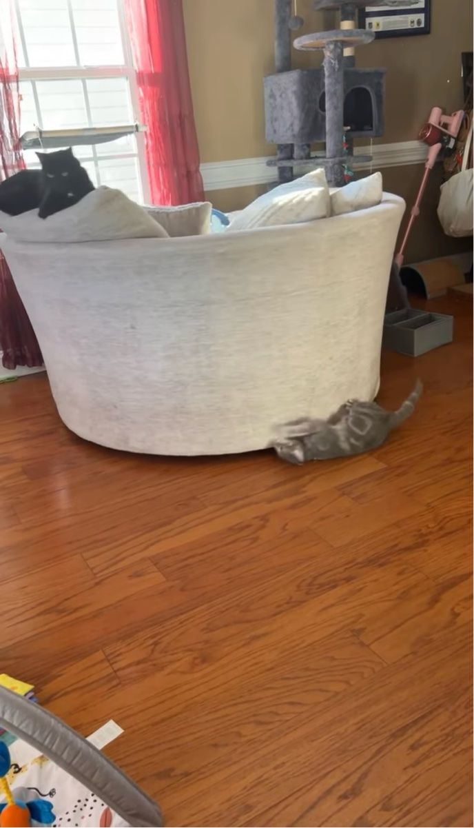 動画の舞台は、アメリカ・ノース・カロライナ州ゴールズボロのとあるお宅。 撮影者さんは、リビングの一角に置かれた回転ソファで、愛猫がユニークな遊びをしているのを目撃しました。