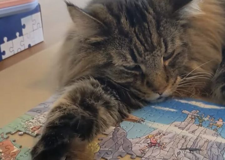 3. ジグソーパズルを見守る猫さん。でもお手手がちょっぴり邪魔かも?