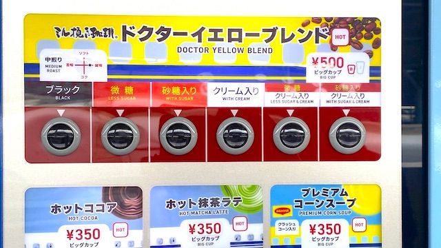 東海道新幹線ホームに設置されている自動販売機で買える、新幹線仕様のドリップコーヒーがあるのをご存知でしょうか? 実はこちら「JR東海×ミル挽き珈琲」のコラボ自販機で、特別仕様ブレンドは全4種類。中でも「ドクターイエローブレンド」は1杯500円とプレミアムなお値段!! 一体どんな味わいなの? 新幹線各駅の設置場所も紹介します。