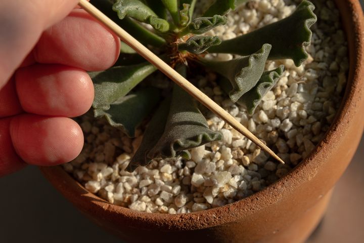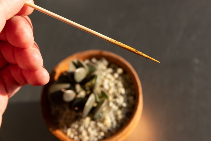 土の乾き具合のチェックには、市販の竹串の使用がおすすめ。