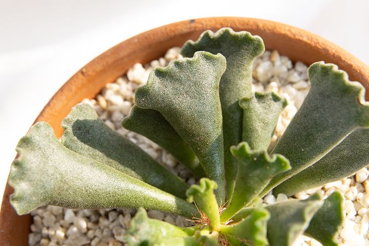 形、色合いともに個性的で、また、成長して大きくなっても株全体の広がりは15cm程度のため、コンパクトなインテリアグリーンとして、コレクターはもちろん、幅広い層からから愛され続けています。
