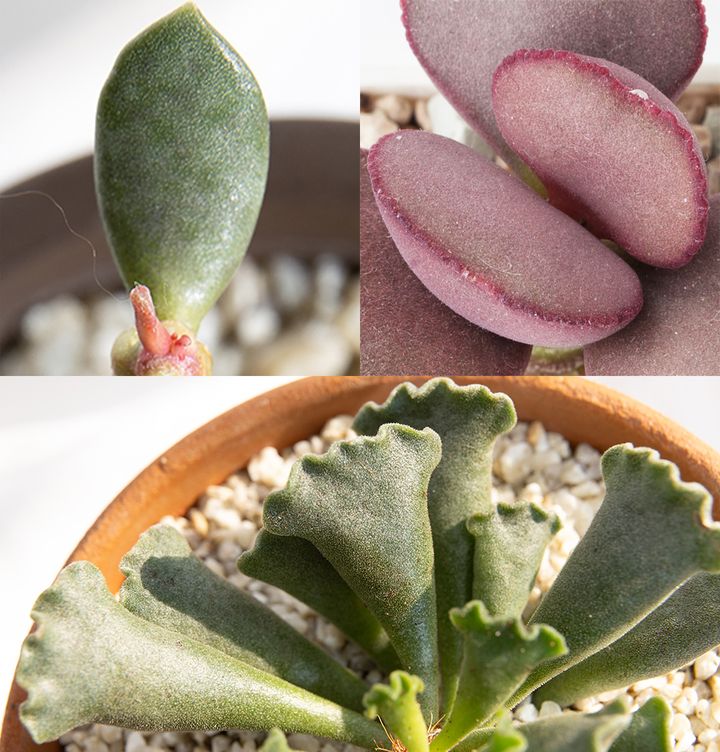 概要:アドロミスクス・クリステイタスは、厚い逆三角形の葉の先端がひだ状になっているのが特徴で、一見すると餃子の皮にも見える、とても可愛らしい葉が目を惹きます。