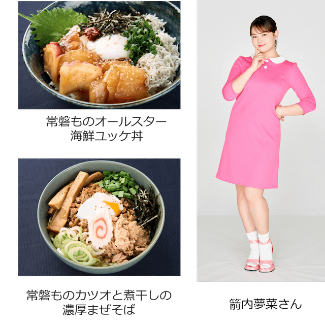 「常磐ものオールスター海鮮ユッケ丼」は、コチュジャンとゴマ油で和えた新鮮な「常磐もの」、浪江町・請戸産の釜揚げシラスに、風味豊かな南相馬の黒潮海苔店のノリをのせ、お米も福島のオリジナルブランド「天のつぶ」を使用。「常磐ものカツオと煮干しの濃厚まぜそば」は、「天のつぶ」の米粉と福島産小麦「ゆきちから」を使用したモチモチな太縮れ麺に、常磐もののカツオと希少なカナガシラの魚粉が絡み合い、濃厚な旨みを味わえます。いずれも〝オール福島〟にこだわった逸品です。