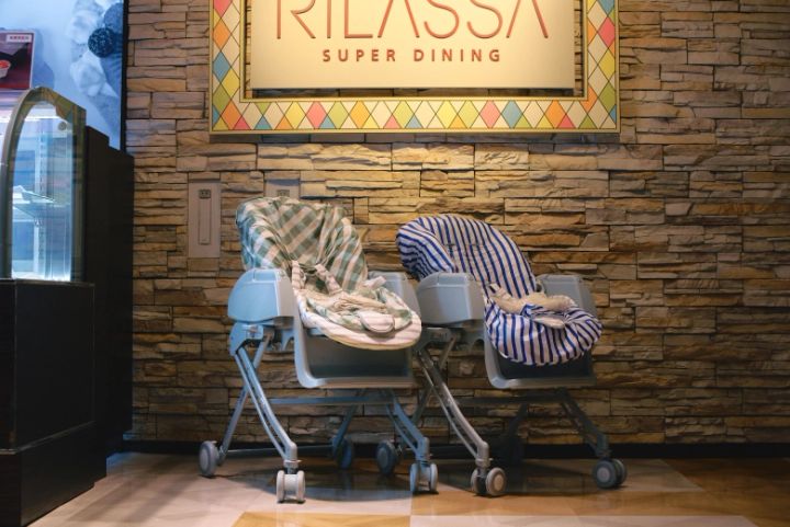 さらに、ここリラッサでは、「お子様うどん」や離乳食(お子様お一人様につき1個)を無料で提供。ダイニング内には、ベビーバウンサーもご用意。授乳スペースとオムツ交換台も完備されています。こういった「お子様歓迎」の心遣いこそ、ママが安らげるポイントです♪