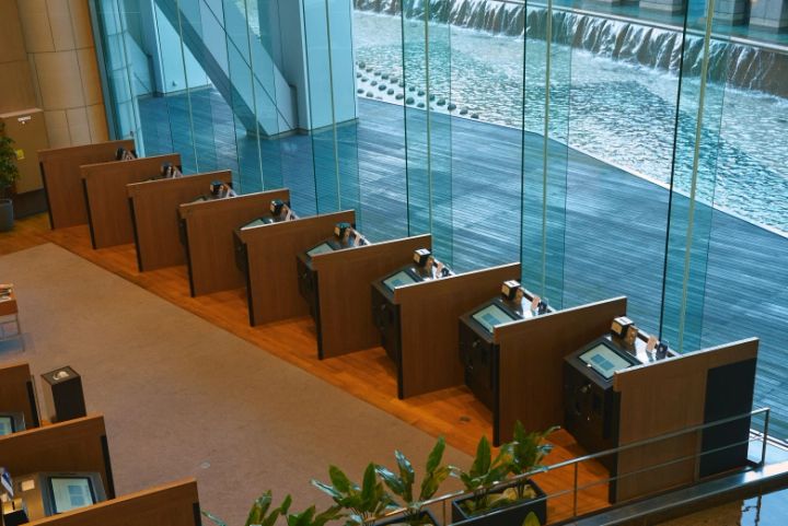 また、チェックイン&アウトはセルフでも可能。セルフチェックイン機がずらりと並び、スムーズにチェックインができます。