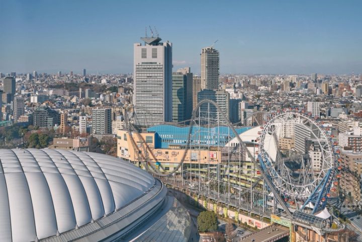 東京ドームはもちろん、観覧車やジェットコースターのアトラクションが目の前! 晴れている日には遠くに埼玉県の方まで見えるそう。