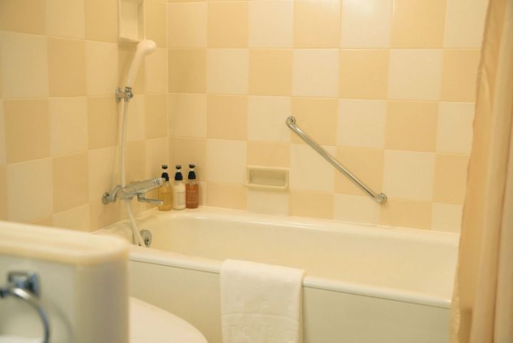 洗面所とお風呂場も広々としていて、親子で一緒に入れます。また、洗面所には子ども用足踏み台も。他にも、補助便座やベッドガードもレンタル可能で、あらゆる月齢の子連れお泊まりに対応しています。