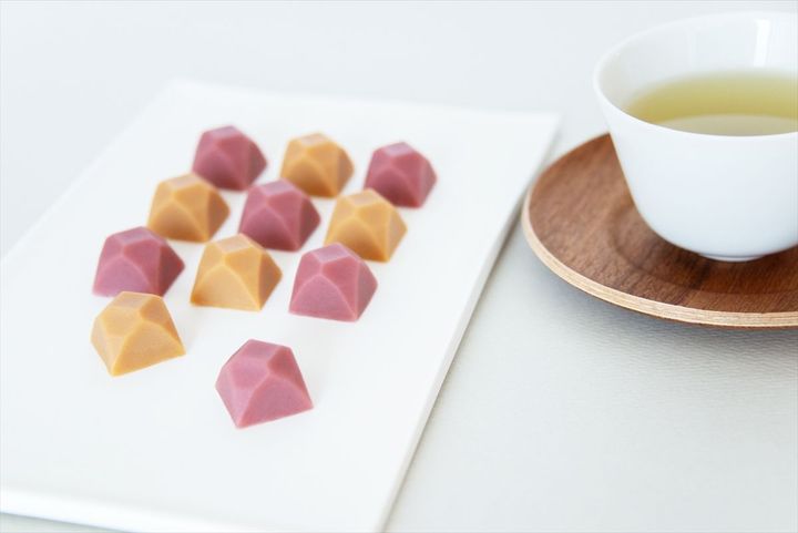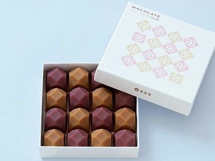 「これ、普通のチョコレートに見えるけどじつは琥珀糖なんです。琥珀糖というのは砂糖と寒天を使ったお菓子。この『WACOLATE』はそこにチョコレートを合わせて作られているんです」