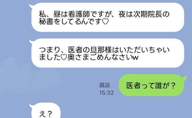 3. 「医者の旦那様はいただきました♡」と略奪宣言に「医者って誰が?」と私。夫の正体を知った女性と嘘つき夫の末路は