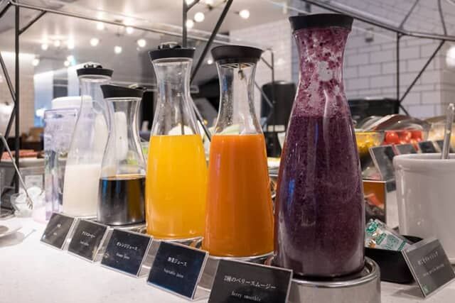 オレンジジュース、野菜ジュース、アイスコーヒー、牛乳の他に、手作りのスムージーまであるのは嬉しいですね。