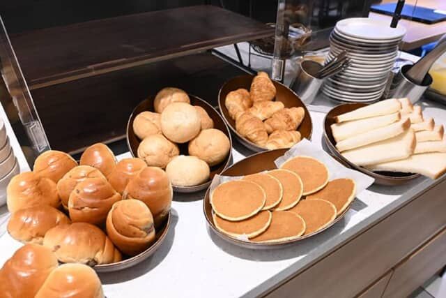 バターロールやレーズンパン、クロワッサン、パンケーキなど、種類も豊富にそろいます。