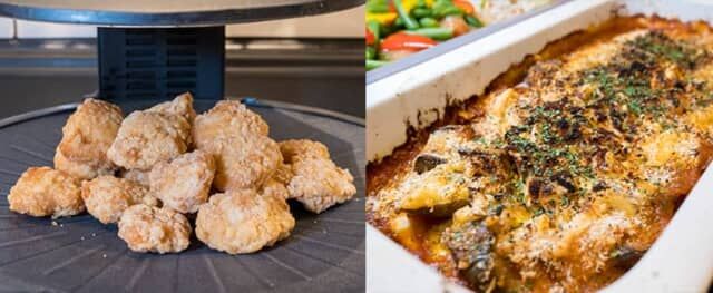 ▲「蒸鶏のくるみ味噌ソース」と「白身魚の竜田揚げ柚子醤油ソース」