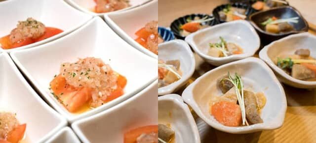 ▲「トマトのマリネ」と「野菜の胡麻和え」