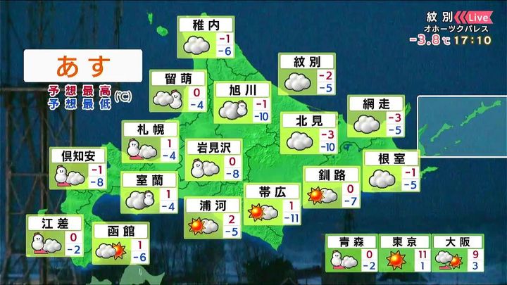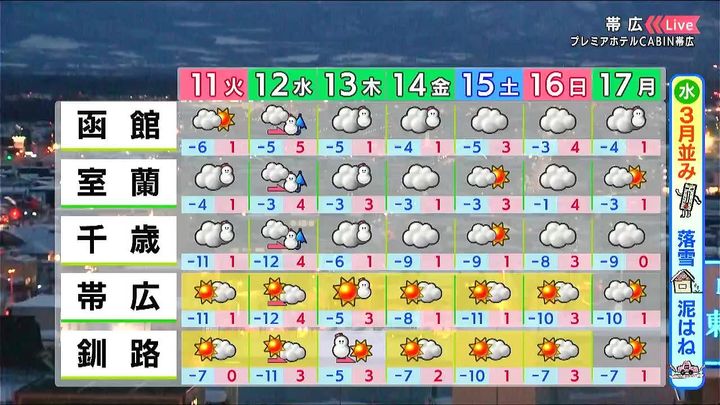 背景は11日午後5時ごろの帯広情報カメラ