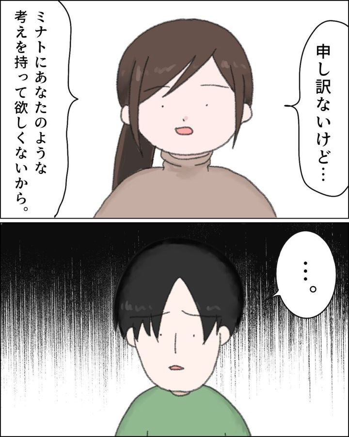 「申し訳ないけど・・・ミナトにあなたのような考えを持って欲しくないから」と私の意見を夫にしっかり伝えました。