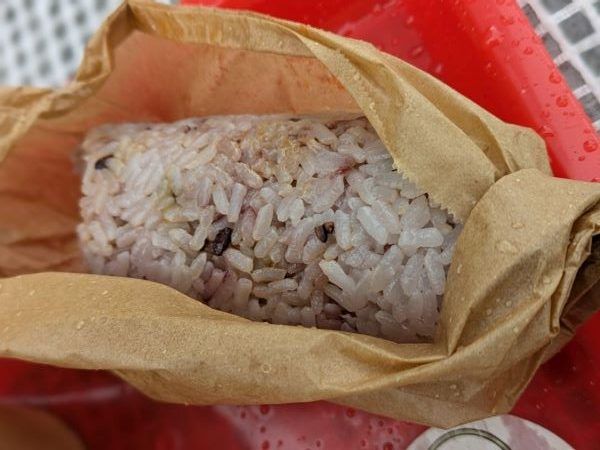 おにぎりは、10センチちょっともあるロングサイズ。オーナーさんのご実家で栽培している、熊本産「七城のこめ」と台湾産黒米をミックスして炊き上げています。「七城のこめ」は冷めても美味しいのが特徴だそうです。