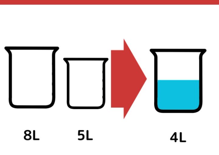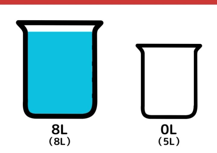 水がちょうど4L入る容器が手元にありません。8Lと5Lの容器を使って、ちょうど4Lの水を計る方法を考えてください。