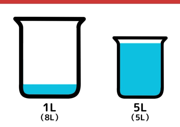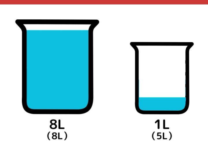 8L容器から5L容器に水を移します。