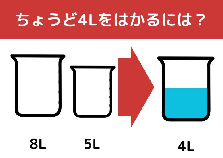 【クイズ】正解できたら一流企業に入社できるかも?「8Lと5Lの容器で4L」をはかるには?