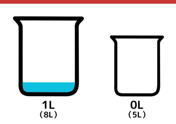 8L容器に入っていた1Lの水を5L容器に移します。