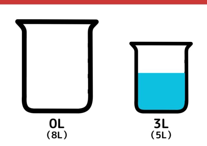 8L容器に入っていた3Lの水を5L容器に移します。