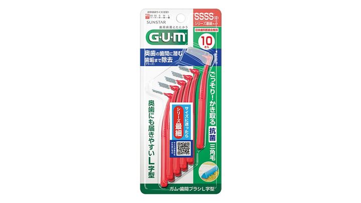 ガム・歯間ブラシ L字型 10P サイズSSSS 10本 ¥550(編集部調べ)/サンスター