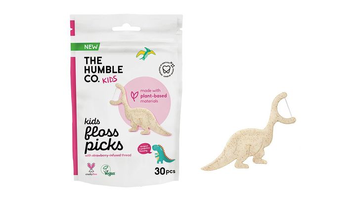 歯科医の監修で作られたスウェーデン生まれのフロス。恐竜の形とイチゴのフレーバーは、子供だけでなく大人も夢中♡