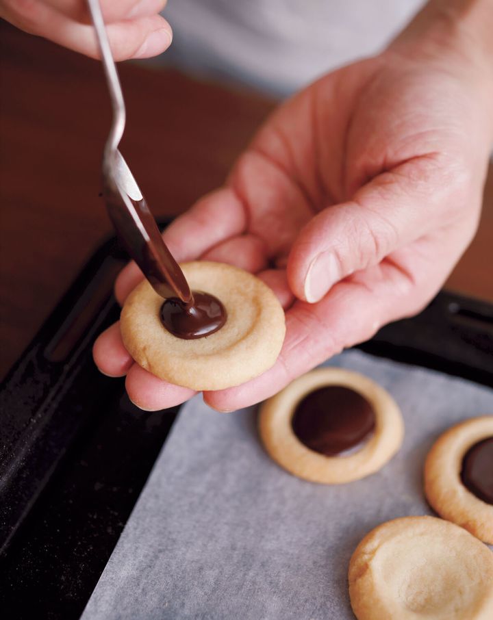 ザクザクと食べごたえのある、少し堅めのクッキーは、溶かしたチョコレートと相性抜群。ひと口食べれば、あとを引き、つい手が伸びます。