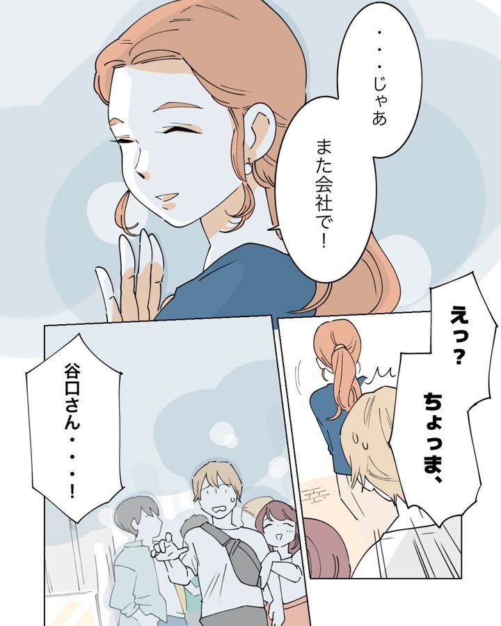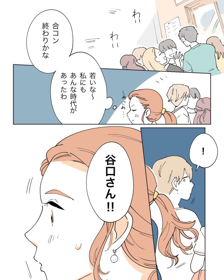 賑やかな人混みを見て「合コン終わりかな。若いな~。私にもあんな時代があったわ」と、しみじみしながら心の中で呟いていると、「谷口さん!!」と声を掛けられてビックリ!