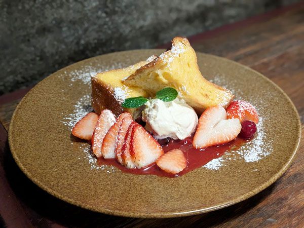 ふわふわとした食感が特長のブリオッシュを使ったフレンチトースト。卵液がしっかりとしみこみ、かみしめるとじゅわっと食感が楽しめます。自家製マスカルポーネクリームのやさしい甘さとコクは、とちあいかやいちごソースとの甘酸っぱさの相性がぴったりなので、あっという間に食べ終わってしまうほど。ひとくち食べると口いっぱいに濃厚な甘さとジューシーないちごのおいしさが広がりました!