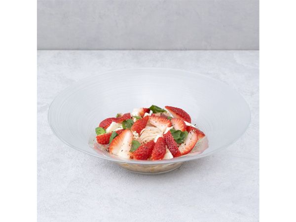 いちごのコンフィチュールをベースにオリーブオイルやレモン果汁などで整えたソースを絡めて食べる、新感覚そうめん。モッツァレラチーズと生ハム、とちあいかをぜいたくにトッピングした冷製そうめんは、とちあいかのジューシーな甘さと、レモンの酸味やバジルの風味がアクセントとなり大人な味わいです。