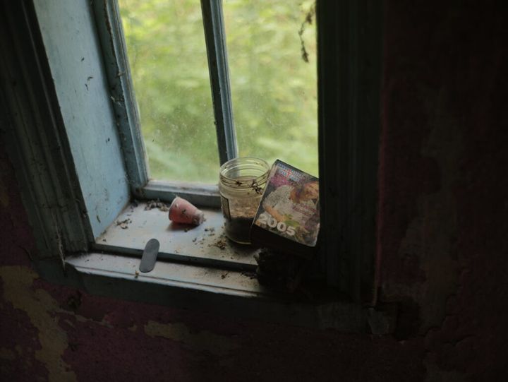辺りには畑以外にほとんど何もないのだが、道の向かいに廃墟が綺麗な形で残っていた。その廃墟の中を三人で覗いてみる。寝室のベッドにはクリーム色のシーツがかかっていて、入口の扉横のフックには分厚いコートまでかかっている。窓辺のレースのカーテンもそのままだ。廃墟だというのに不思議と居心地よく、薄気味悪い感じはなかった。家の外の井戸や部屋に残されたカレンダーなどを眺めていると、ここに暮らした人が過ごした時間がそのままこの場所にとどまって呼吸を続けているようだった。